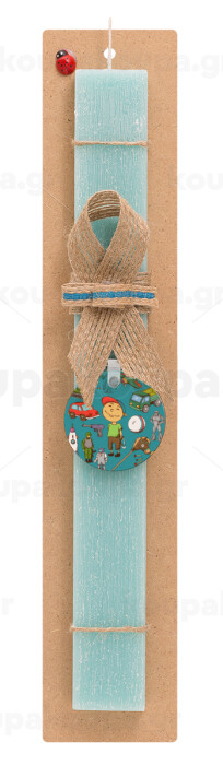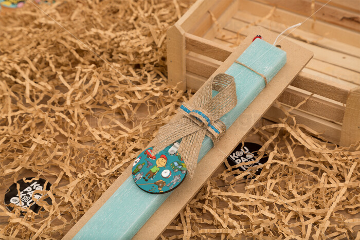Toys Boy, Easter Set, wooden keychain & aromatic flat Easter candle (30cm) (TURQUOISE)