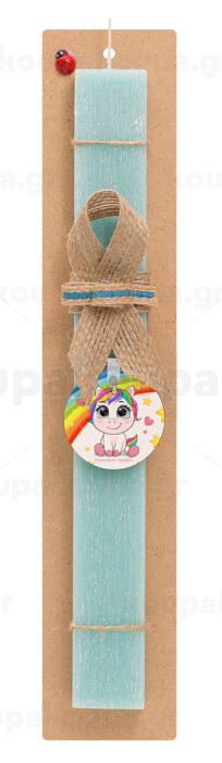 Unicorn baby με όνομα, Easter Set, wooden keychain & aromatic flat Easter candle (30cm) (TURQUOISE)