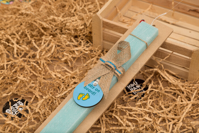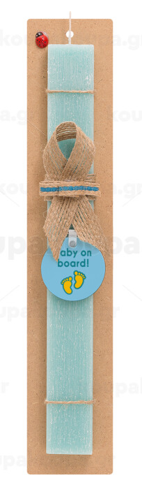 Baby on Board πατουσα Αγόρι, Easter Set, wooden keychain & aromatic flat Easter candle (30cm) (TURQUOISE)
