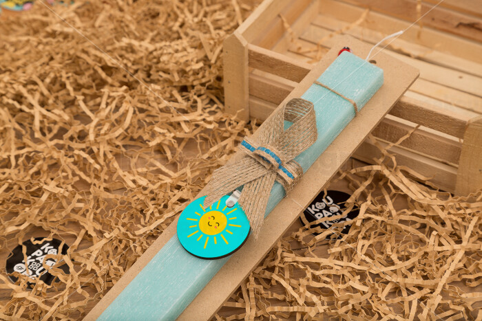 Happy sun, Easter Set, wooden keychain & aromatic flat Easter candle (30cm) (TURQUOISE)