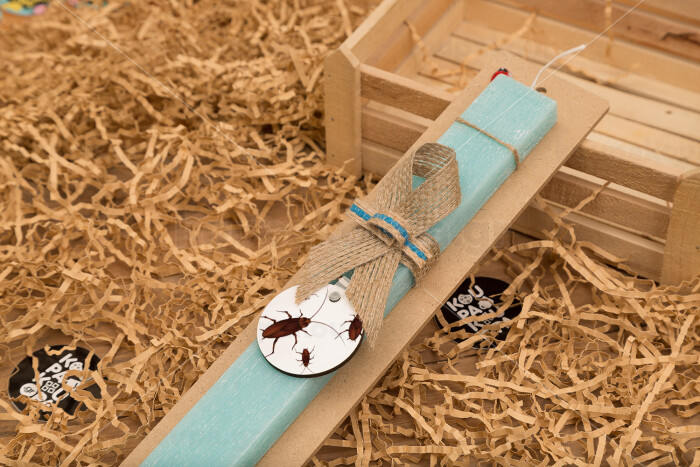 Blattodea, Easter Set, wooden keychain & aromatic flat Easter candle (30cm) (TURQUOISE)