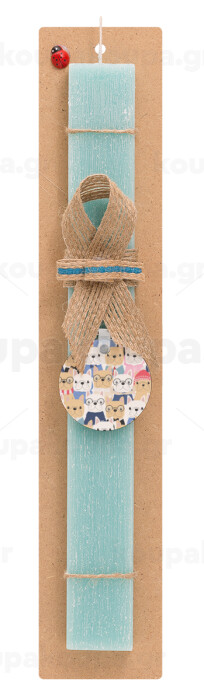 Σκύλοι, Easter Set, wooden keychain & aromatic flat Easter candle (30cm) (TURQUOISE)