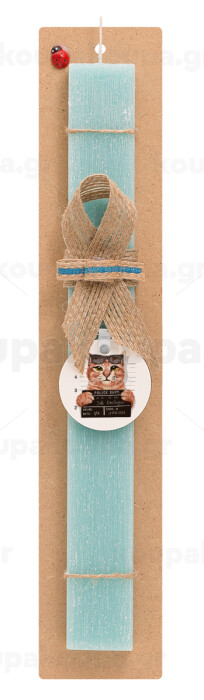 Cool cat, Easter Set, wooden keychain & aromatic flat Easter candle (30cm) (TURQUOISE)