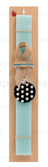 Σκελετοί b/w, Easter Set, wooden keychain & aromatic flat Easter candle (30cm) (TURQUOISE)