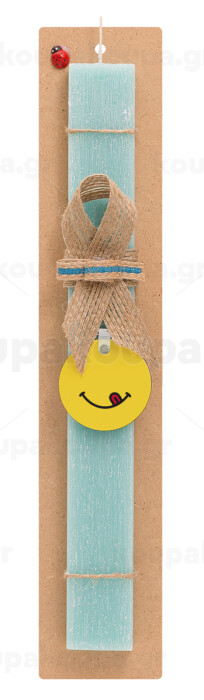 Χαμόγελο , Easter Set, wooden keychain & aromatic flat Easter candle (30cm) (TURQUOISE)