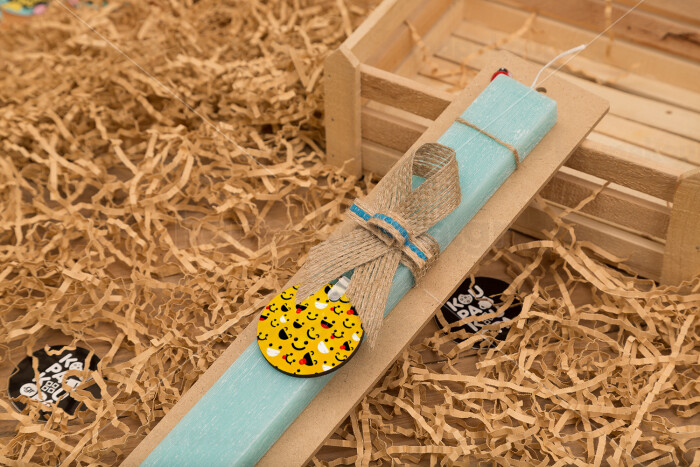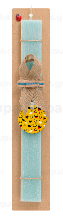Smilies , Easter Set, wooden keychain & aromatic flat Easter candle (30cm) (TURQUOISE)