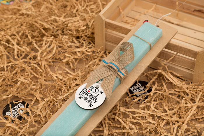 Best Friends forever, Easter Set, wooden keychain & aromatic flat Easter candle (30cm) (TURQUOISE)