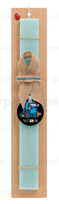 Among Trust no one, Easter Set, wooden keychain & aromatic flat Easter candle (30cm) (TURQUOISE)