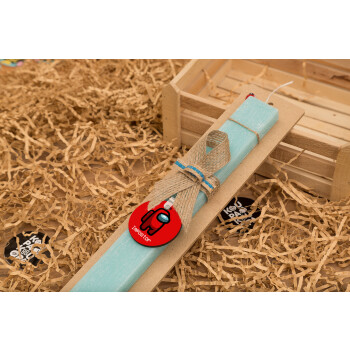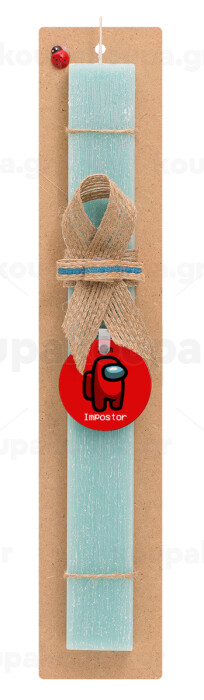 Among US i am impostor, Easter Set, wooden keychain & aromatic flat Easter candle (30cm) (TURQUOISE)