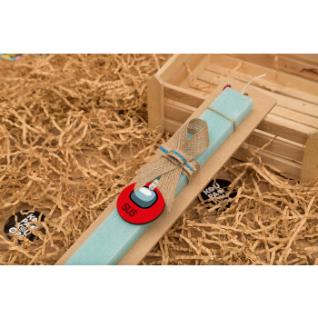 Among US SUS!!!, Easter Set, wooden keychain & aromatic flat Easter candle (30cm) (TURQUOISE)