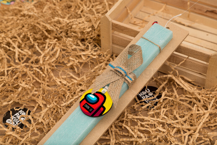 Among US, Easter Set, wooden keychain & aromatic flat Easter candle (30cm) (TURQUOISE)