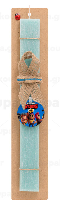 Brawl Stars Blue, Easter Set, wooden keychain & aromatic flat Easter candle (30cm) (TURQUOISE)