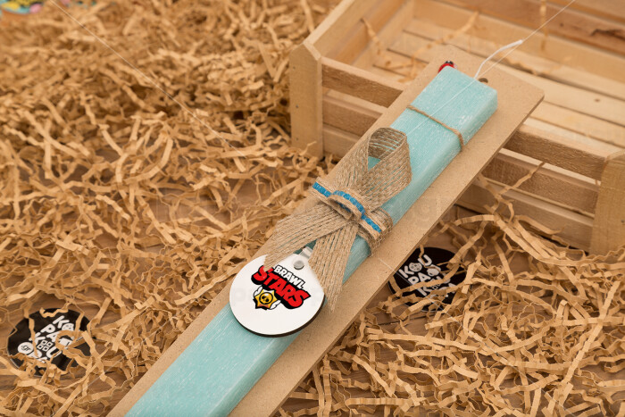 Brawl Stars, Easter Set, wooden keychain & aromatic flat Easter candle (30cm) (TURQUOISE)
