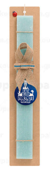 Eat Sleep Fortnite Repeat, Easter Set, wooden keychain & aromatic flat Easter candle (30cm) (TURQUOISE)