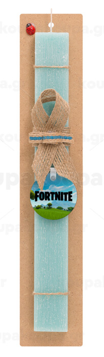 Fortnite landscape, Easter Set, wooden keychain & aromatic flat Easter candle (30cm) (TURQUOISE)