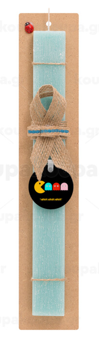 Pacman waka waka waka, Easter Set, wooden keychain & aromatic flat Easter candle (30cm) (TURQUOISE)