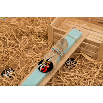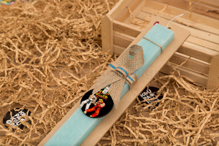 Street fighter, Easter Set, wooden keychain & aromatic flat Easter candle (30cm) (TURQUOISE)