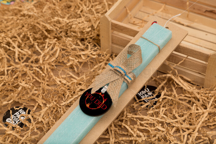 You Died | Dark Souls, Easter Set, wooden keychain & aromatic flat Easter candle (30cm) (TURQUOISE)