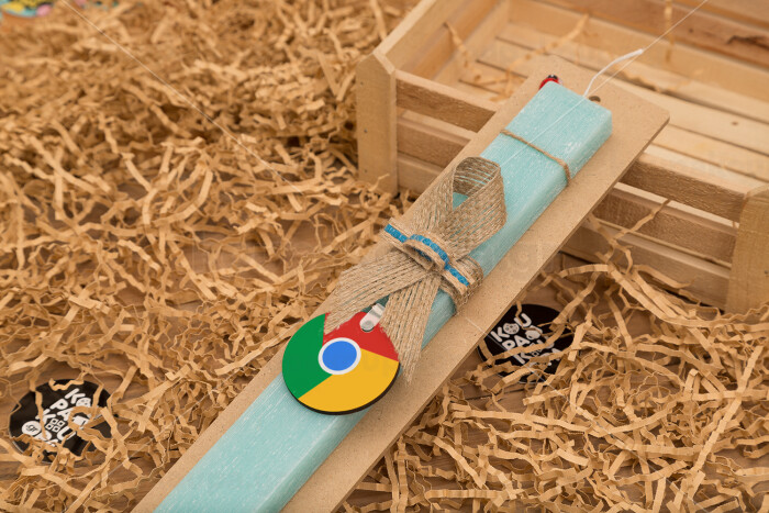 Chrome, Easter Set, wooden keychain & aromatic flat Easter candle (30cm) (TURQUOISE)