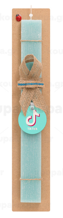 tik tok blue, Easter Set, wooden keychain & aromatic flat Easter candle (30cm) (TURQUOISE)