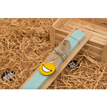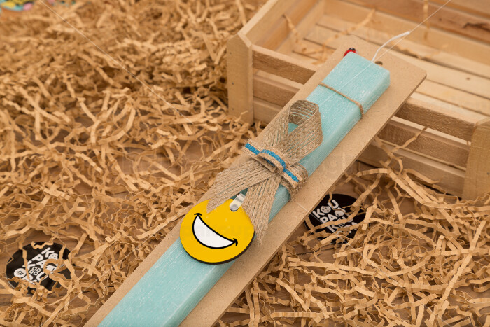 Big Smile, Easter Set, wooden keychain & aromatic flat Easter candle (30cm) (TURQUOISE)