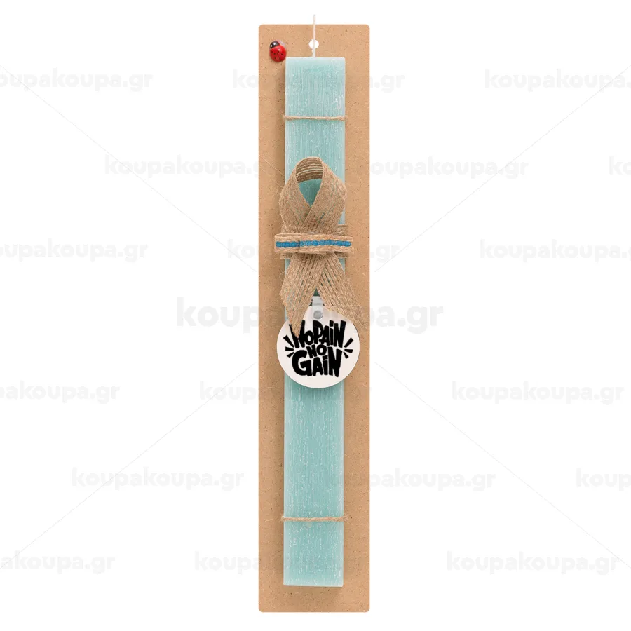 No pain no gain, Easter Set, wooden keychain & aromatic flat Easter candle (30cm) (TURQUOISE)