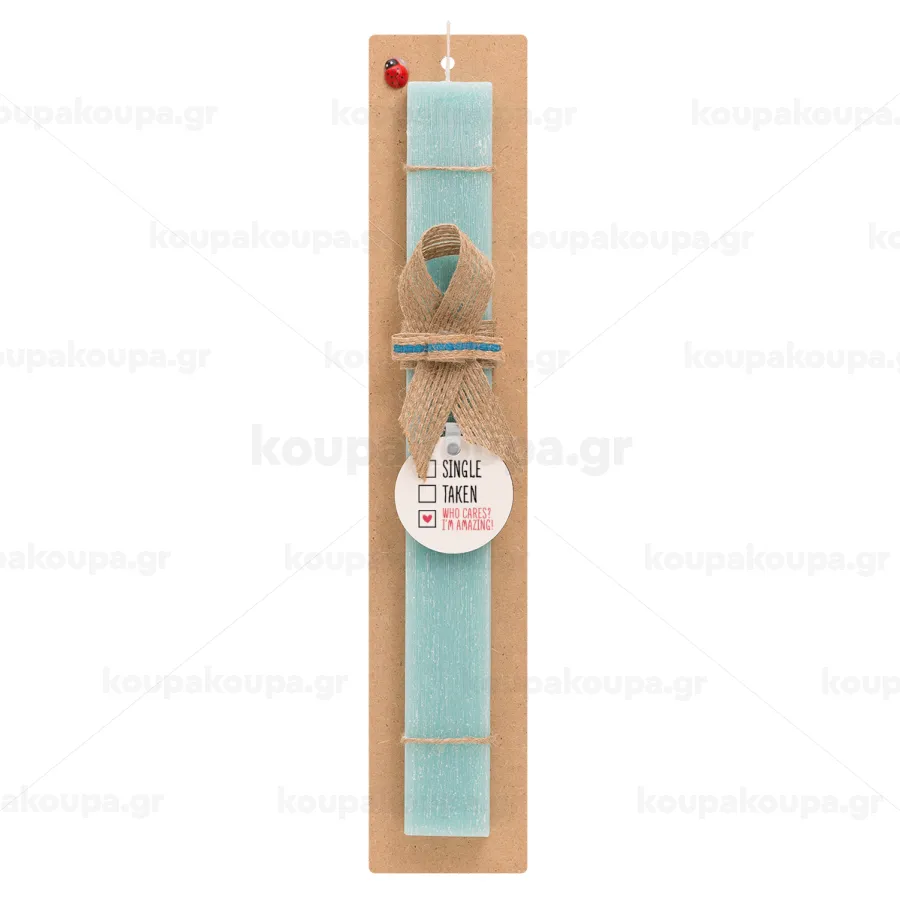 Single, Taken, Who cares i'm amazing, Easter Set, wooden keychain & aromatic flat Easter candle (30cm) (TURQUOISE)