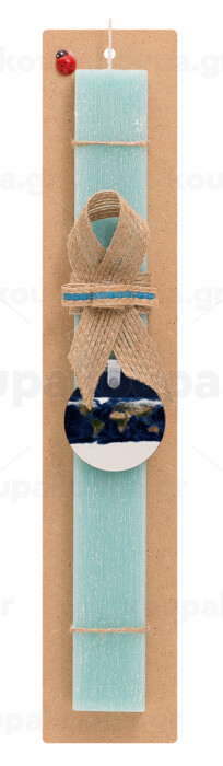 Earth map, Easter Set, wooden keychain & aromatic flat Easter candle (30cm) (TURQUOISE)