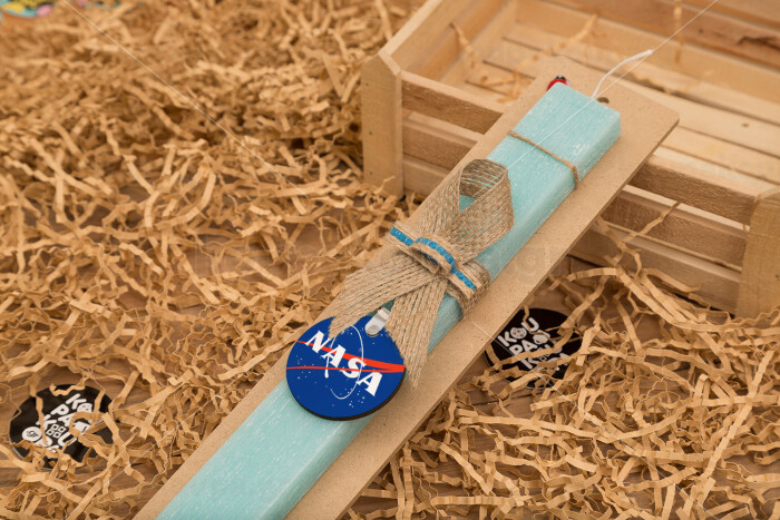 Nasa, Easter Set, wooden keychain & aromatic flat Easter candle (30cm) (TURQUOISE)