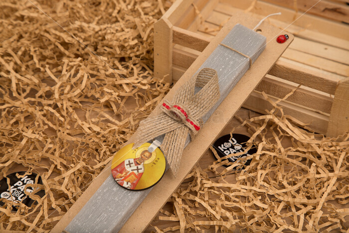 Saint Nicholas orthodox , Easter Set, wooden keychain & scented Easter candle flat (30cm) (GRAY)