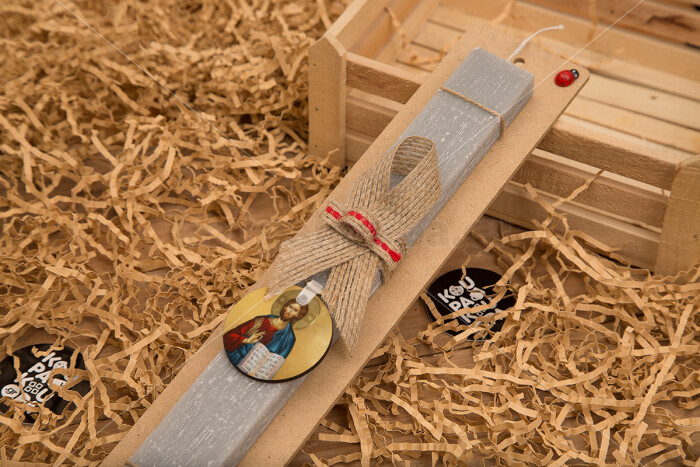 Jesus, Easter Set, wooden keychain & scented Easter candle flat (30cm) (GRAY)