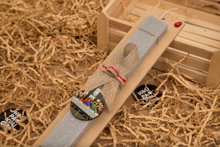 The Last Supper, Easter Set, wooden keychain & scented Easter candle flat (30cm) (GRAY)