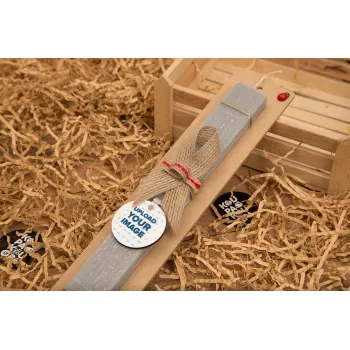 Upload your logo, Easter Set, wooden keychain & scented Easter candle flat (30cm) (GRAY)