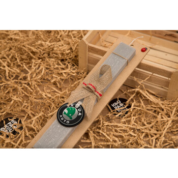 SKODA, Easter Set, wooden keychain & scented Easter candle flat (30cm) (GRAY)