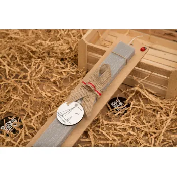 Sailing, Easter Set, wooden keychain & scented Easter candle flat (30cm) (GRAY)