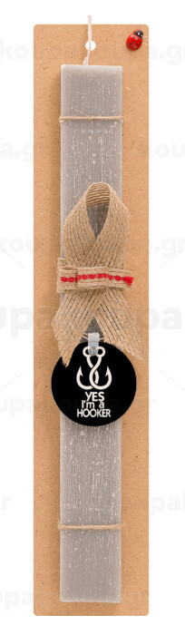 Yes i am Hooker, Easter Set, wooden keychain & scented Easter candle flat (30cm) (GRAY)