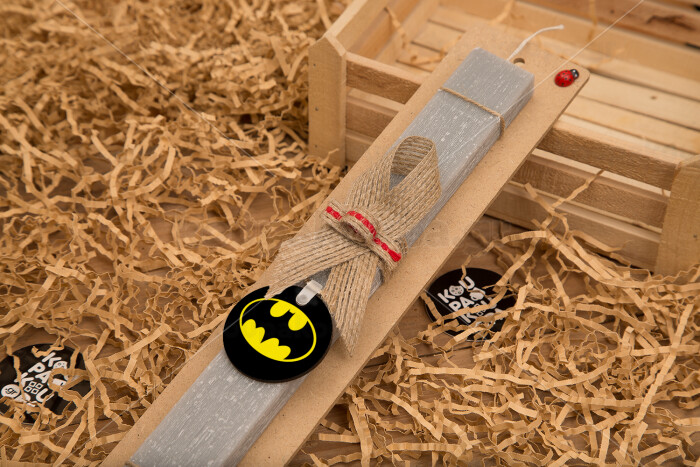 Batman, Easter Set, wooden keychain & scented Easter candle flat (30cm) (GRAY)
