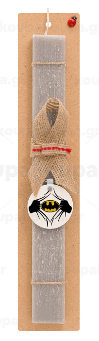 Hero batman, Easter Set, wooden keychain & scented Easter candle flat (30cm) (GRAY)