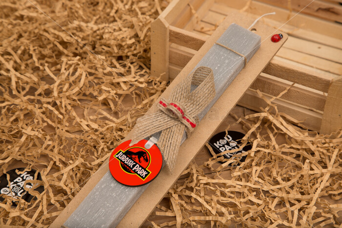 Jurassic park, Easter Set, wooden keychain & scented Easter candle flat (30cm) (GRAY)
