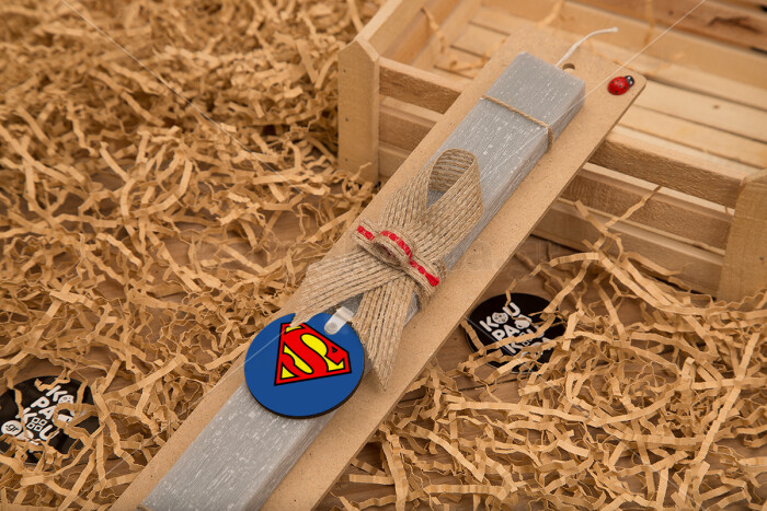Superman vintage, Easter Set, wooden keychain & scented Easter candle flat (30cm) (GRAY)
