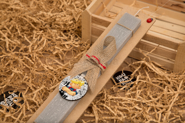 Dennis the Menace, Easter Set, wooden keychain & scented Easter candle flat (30cm) (GRAY)