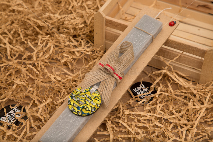 All the minions, Easter Set, wooden keychain & scented Easter candle flat (30cm) (GRAY)