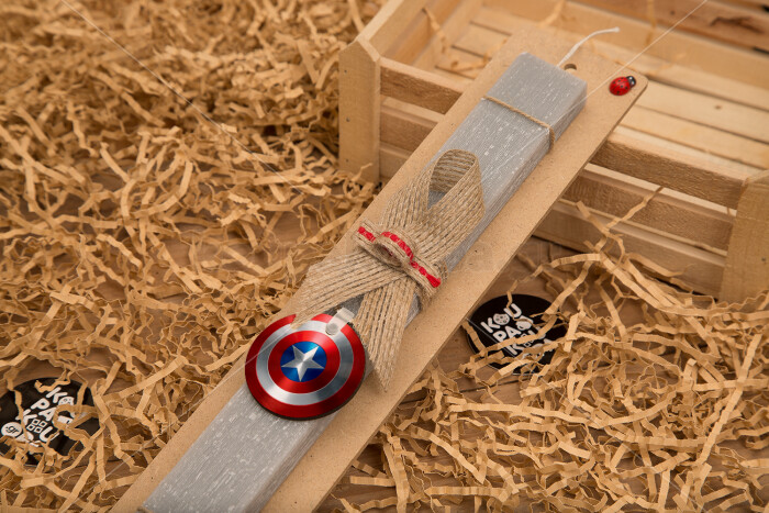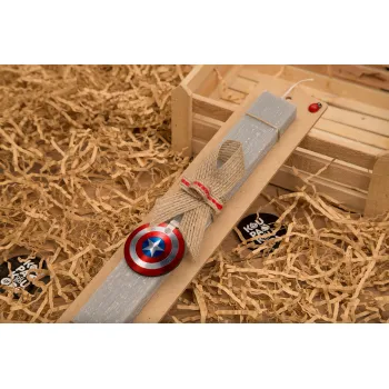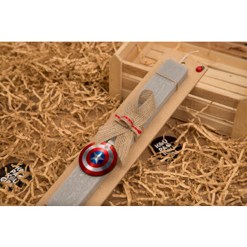 Captain America, Easter Set, wooden keychain & scented Easter candle flat (30cm) (GRAY)