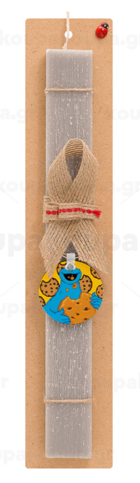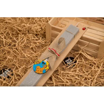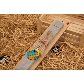 Cookie Monster, Easter Set, wooden keychain & scented Easter candle flat (30cm) (GRAY)