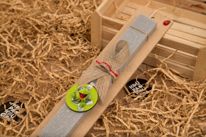 Kermit the frog, Easter Set, wooden keychain & scented Easter candle flat (30cm) (GRAY)