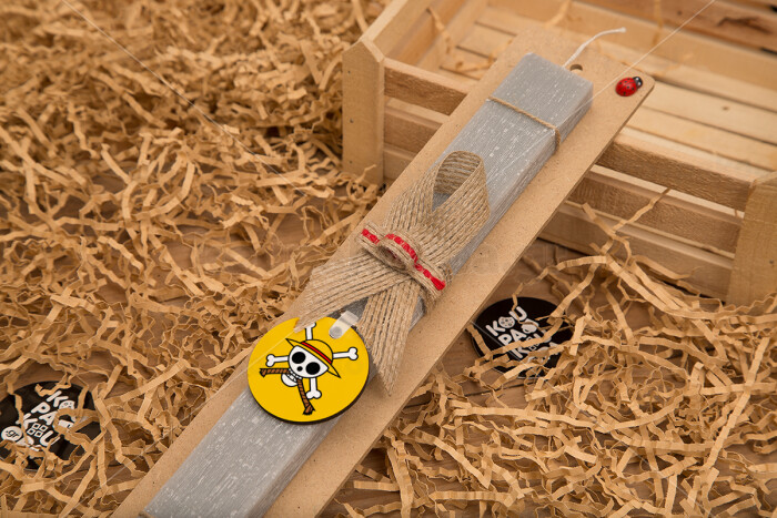Onepiece skull, Easter Set, wooden keychain & scented Easter candle flat (30cm) (GRAY)