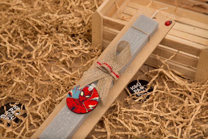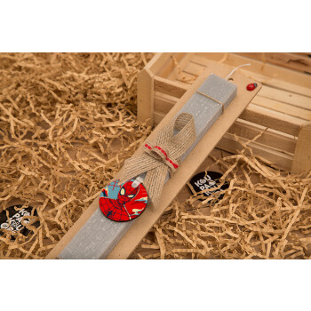 Spiderman kid, Easter Set, wooden keychain & scented Easter candle flat (30cm) (GRAY)