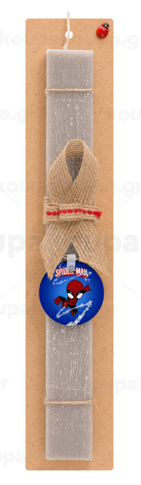 Spiderman kid, Easter Set, wooden keychain & scented Easter candle flat (30cm) (GRAY)