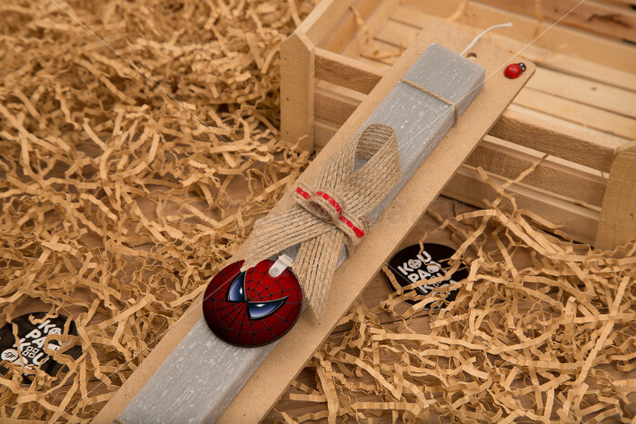 Spiderman mask, Easter Set, wooden keychain & scented Easter candle flat (30cm) (GRAY)
