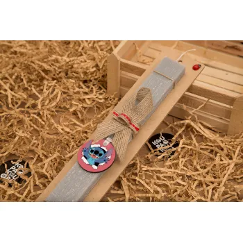 Stitch hello!!!, Easter Set, wooden keychain & scented Easter candle flat (30cm) (GRAY)